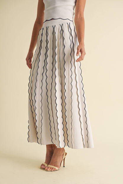 Pleated Sweater Knit Maxi Skirt